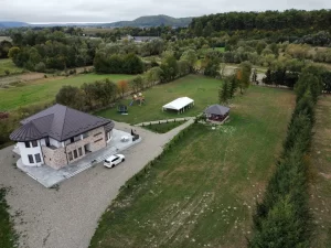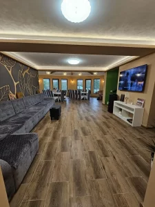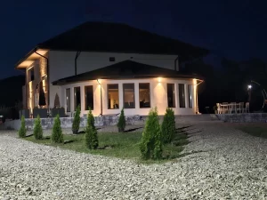 Cu o curte de 8.000 mp și un interior al casei structurat în 7 dormitoare și un living foarte generos, totul amenajat confortabil, cu gust și cu atenție la detalii, noi, gazdele, suntem pregătiți să vă oferim toate facilitățile necesare pentru o ședere plăcută și relaxantă, în intimitate. O bucătărie și un foișor echipate complet și modern vă vor permite să pregătiți mese delicioase în compania prietenilor. Încălzește-ți sufletul și corpul în ciubărul luxury, înconjurat de brazi și aer curat. Pe copii îi așteptăm cu un loc de joacă exterior complex, teren de joacă pentru fotbal, plimbări în natură.