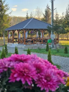 La căderea serii, puteți savura liniștea și frumusețea naturii din confortul terasei noastre, în timp ce vă bucurați de razele roșiatice ale apusului muntos. Și pentru a completa experiența, vă oferim și un loc special amenajat pentru focul de tabără, unde poveștile și amintirile se vor contura și mai frumos.